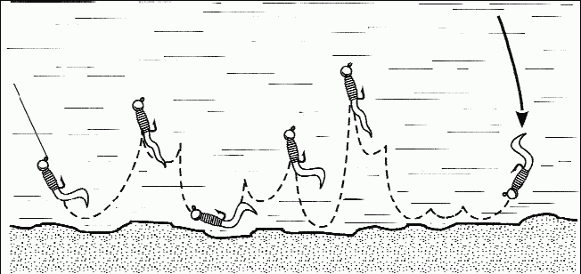 Ступінчаста й підривна проводки — це два варіанти, які варто чергувати на кожній точці. Важливо дотримуватись стабільного ритму падіння: на мілководді — 2 секунди, на ямах — до 5. Підрив має бути коротким, майже акустичним, щоб створити мікровібрацію й спровокувати пасивного хижака.
