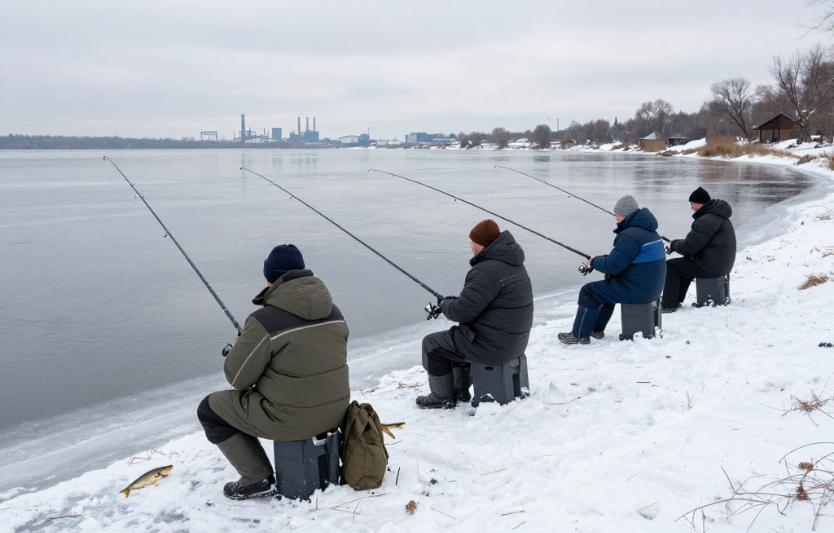- Канівське водосховище: славиться своїми “білими” рибалками. Лов ляща та плотви на великих глибинах з використанням годівниць — це класика січневого Дніпра.